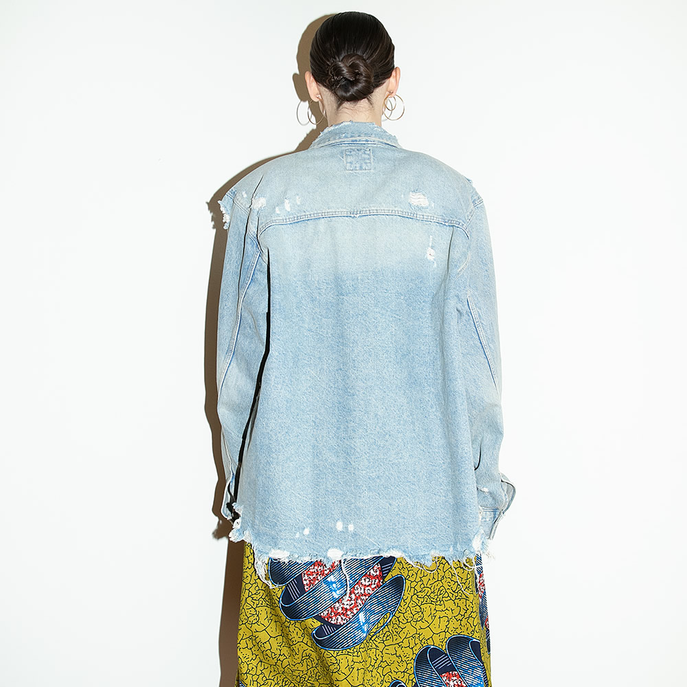 Gonna midi a palloncino in cotone wax con stampa grafica multicolore su base giallo senape. Il capo ha vita alta con elastico posteriore per una vestibilità confortevole e tasche laterali.