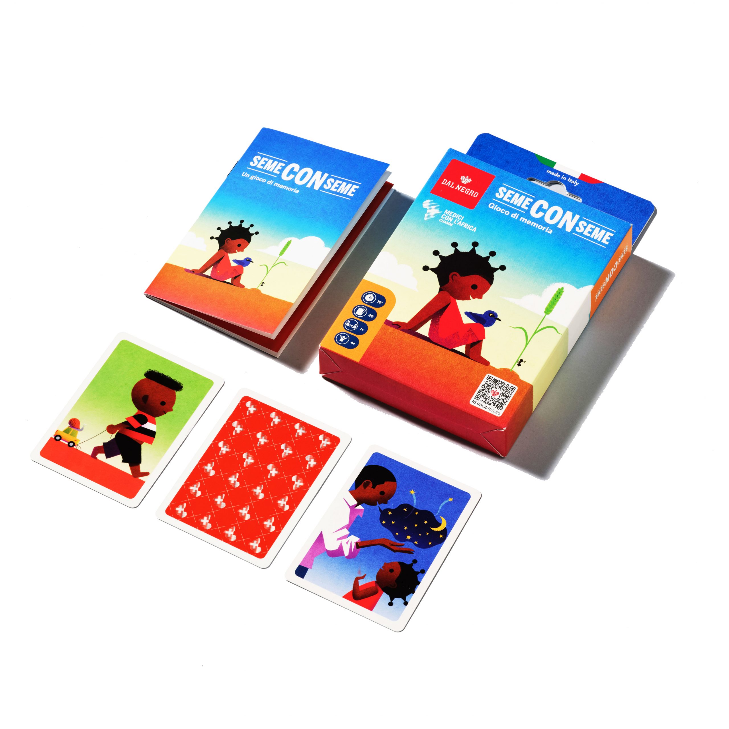 Queste diverse fasi sono descritte con una filastrocca nel libretto di istruzioni contenuto nel gioco, al cui interno si racconta brevemente l’intervento in Etiopia da cui prende ispirazione il gioco, la mission e le aree di intervento di Cuamm.
