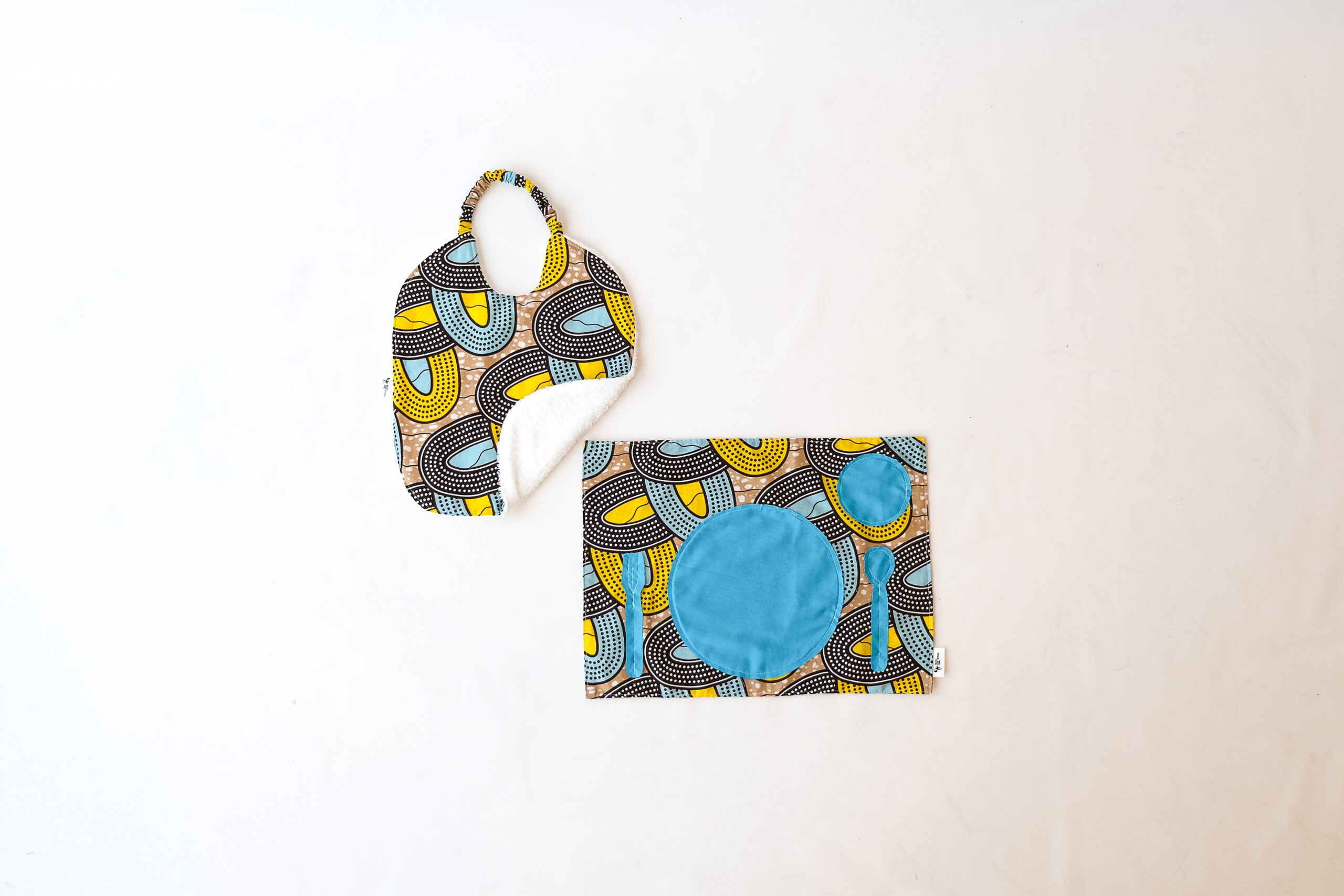 Dalle stoffe dell’Africa nasce un set unico, colorato e pieno di vita, pensato per accompagnare ogni bimbo nei suoi primi passi all’asilo.